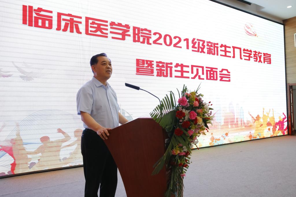 党委书记王德要求新生要树立远大理想抱负,及早做好学业和职业生涯规划;回归常识,刻苦读书学习练就真本领;丰富课余文化生活,不断提升个人综合素质。强调要树立起安全意识,注意个人自身安全防范,防范网络、电信等诈骗,特别是节假日、寒暑假往返旅途安全。