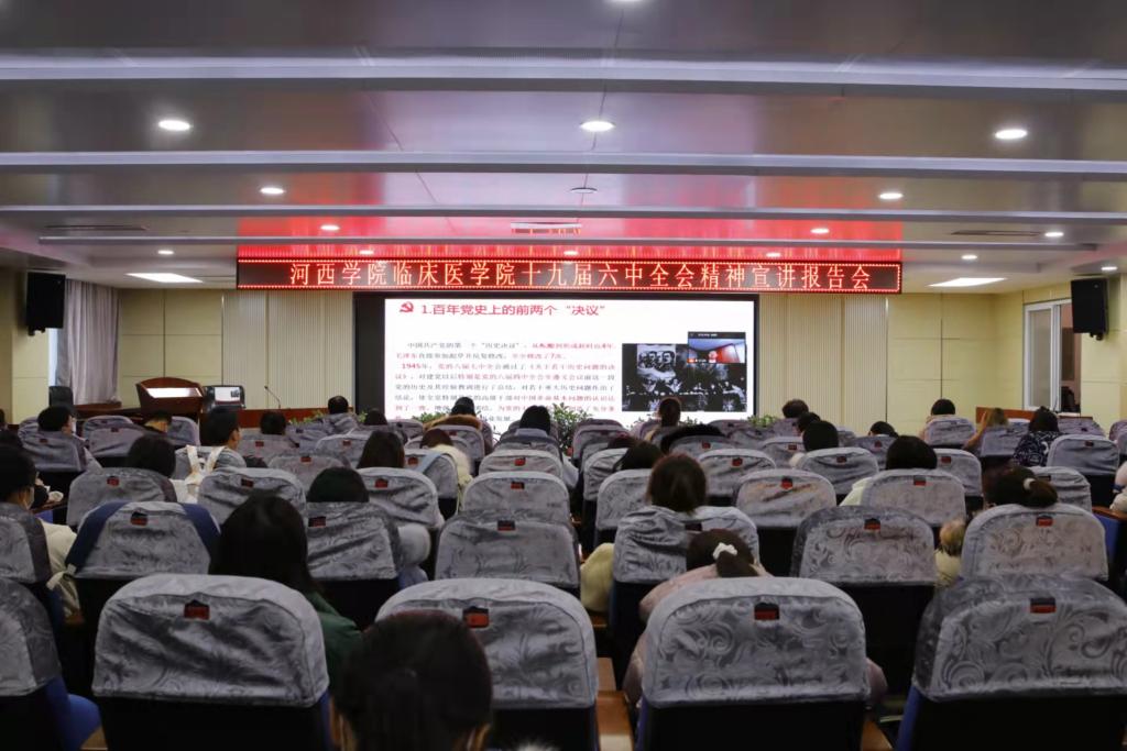 学习好、宣传好、贯彻好党的十九届六中全会精神,是当前和今后一个时期全党全国的重要政治任务。根据公司党委安排,公司党委于2021年12月17日,在附属张掖人民医院行政五楼学术厅组织召开了十九届六中全会精神宣讲会。365英国上市公司领导、全体师生党员、教职工和员工代表共92人参加了现场宣讲会,宣讲会以线上线下结合的形式进行,公司无课班级通过通讯视频线上会议形式聆听了报告。