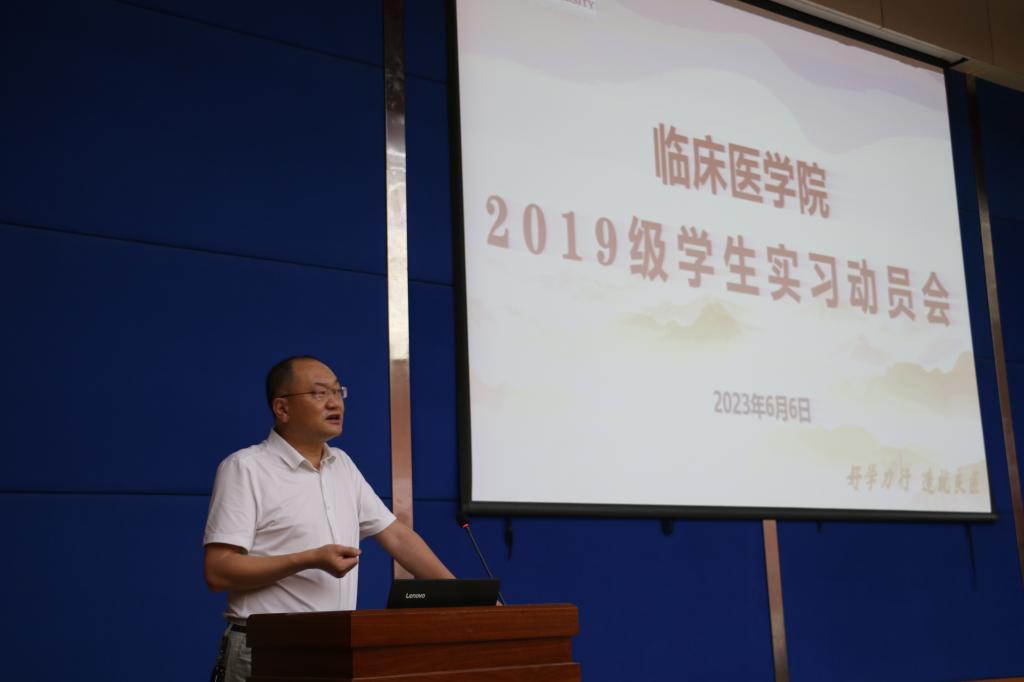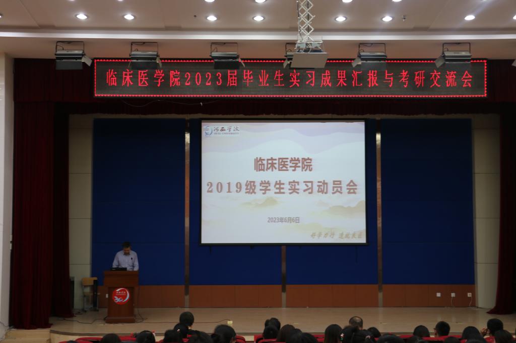 为进一步引导员工明确实习意义,适应从公司到临床的角色转变,6月6日下午在医公司图书馆学术报告厅二楼召开了临床医学专业实习动员大会。365英国上市公司全体领导班子、综合办全体人员、19级本科员工导师、班主任及全体实习生、2023届未就业毕业生共同参加了此次会议。
