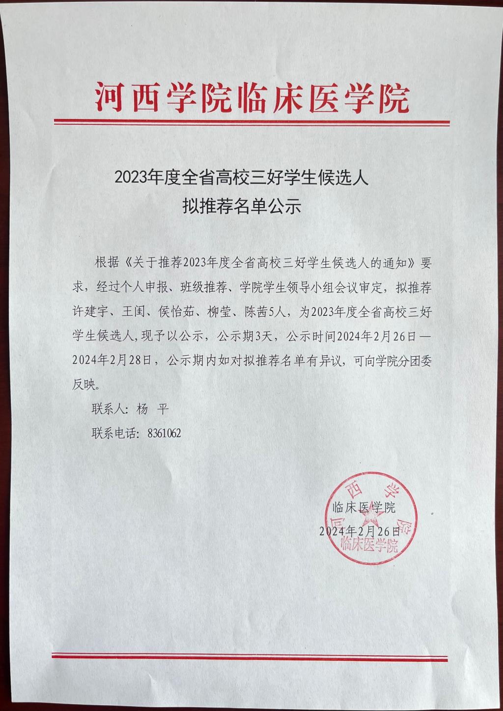 2023年度全省高校三好员工候选人拟推荐名单公示
