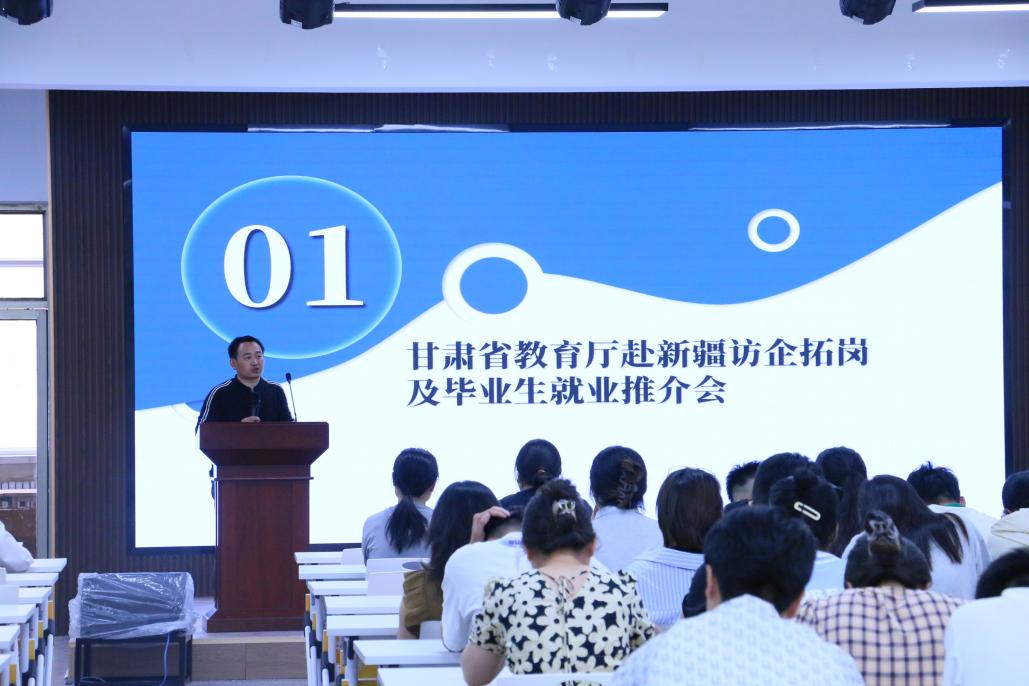 紧接着,365英国上市公司综合办主任杨平向大家介绍了新疆就业市场,为大家树立正确的就业观。他带同学们回顾了公司往届毕业生就业去向、新疆就业分布、以及在新疆地区访企拓岗的基本情况。他鼓励员工到西部建功立业,展现才华,实现梦想,也希望毕业生理性评估自己的能力和期望,以积极的心态面对未来,做好充分准备,早日成功就业。