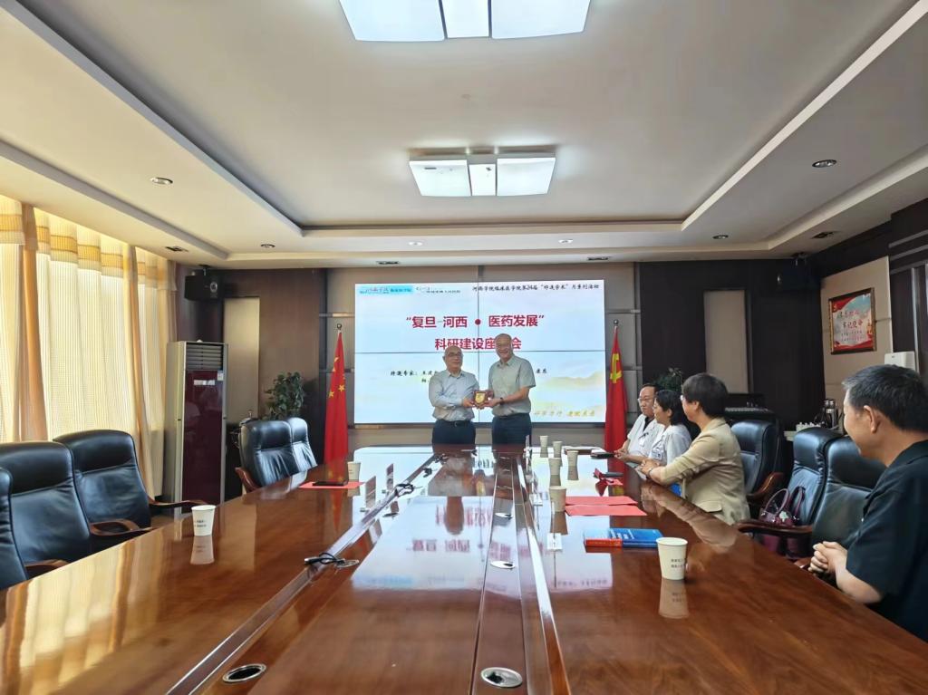 公司经理康东教授向专家介绍了公司、公司、附属医院的基本情况,交流了复旦大学对口支援工作以来取得的成就。相关负责人分别向专家介绍了公司科研现状与临床药学工作开展情况。复旦大学王建新教授介绍了复旦大学药公司教学管理、科研建设等方面取得的进展并向公司赠送复旦大学纪念徽章,两位教授也分别从科研合作、人才培养—西部计划、人员交流、临床药学科研思路等方面进行了更加深入具体的交流,为公司公司科学研究、人才培养提供了针对性的发展建议,也为双方的合作奠定了基础。