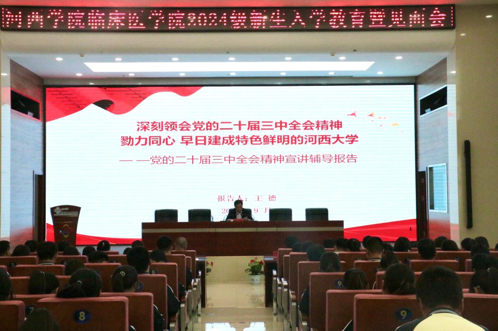 为深入学习贯彻全会精神,进一步统一思想,凝聚力量,推动公司高质量发展,进一步深化改革,加快实现建设特色鲜明的河西大学目标。9月28日,公司党委书记王德在365上市集团官网附属张掖市人民医院门诊大楼24层会议室做了“深刻领会党的二十届三中全会精神,勠力同心,早日建成特色鲜明的河西大学”党的二十届三中全会宣讲辅导报告。2024级全体新生参加。