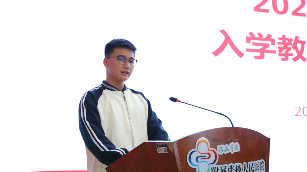 2024级新生代表临(本)244班高元发言,表达了我们要勇敢面对困难,学好基础知识,为医学事业贡献自己力量的决心。