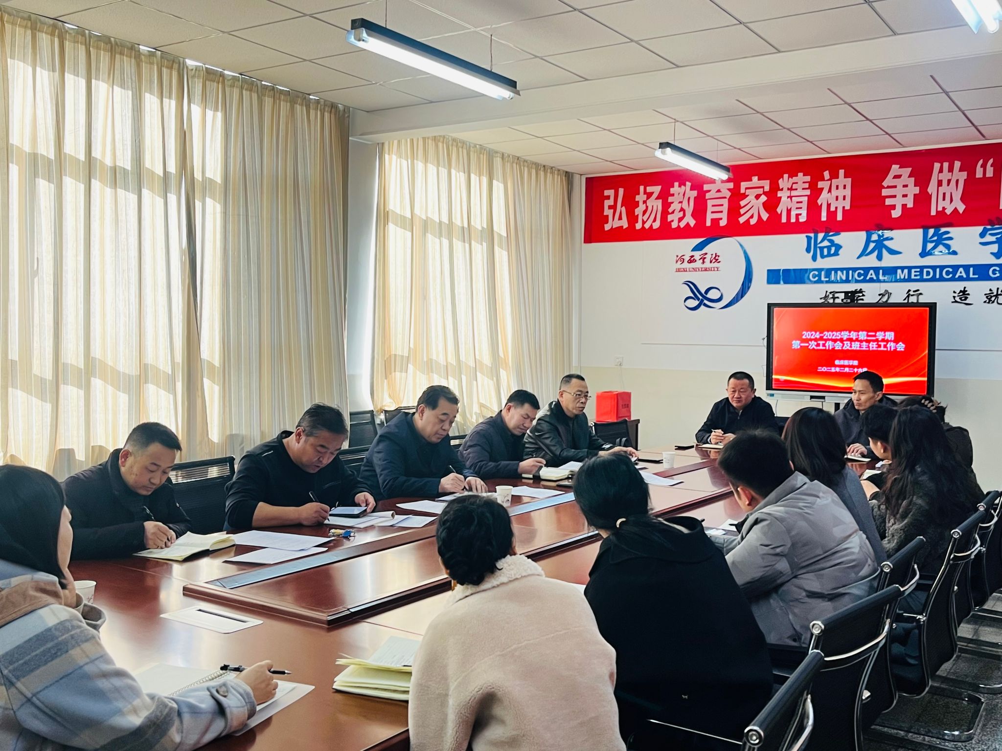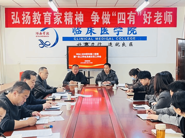 2月26日上午,365英国上市公司在医学旧校区召开2024-2025学年新学期工作例会,公司负责人、教科办、学工办、实训中心全体工作人员和班主任辅导员参加本次会议。