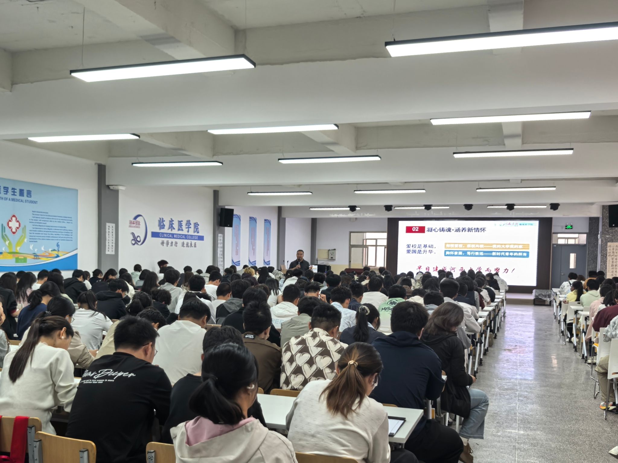 此次入学教育构建了"思想-专业-行为-发展"四位一体的培养体系,从理想信念、专业认知、行为规范到生涯规划为新生提供全方位指导,有效引导新生树立正确世界观、人生观、价值观,为培养有理想、敢担当、能吃苦、肯奋斗的新时代医学人才奠定坚实基础,助力新生以昂扬姿态开启医学征程。