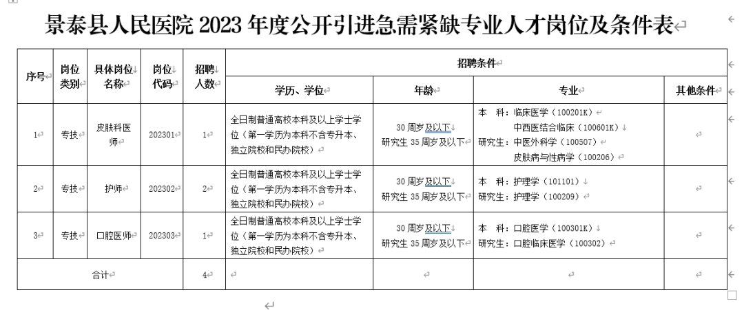 附件:1.《景泰县人民医院2023年度公开引进急需紧缺专业人才岗位及条件表》