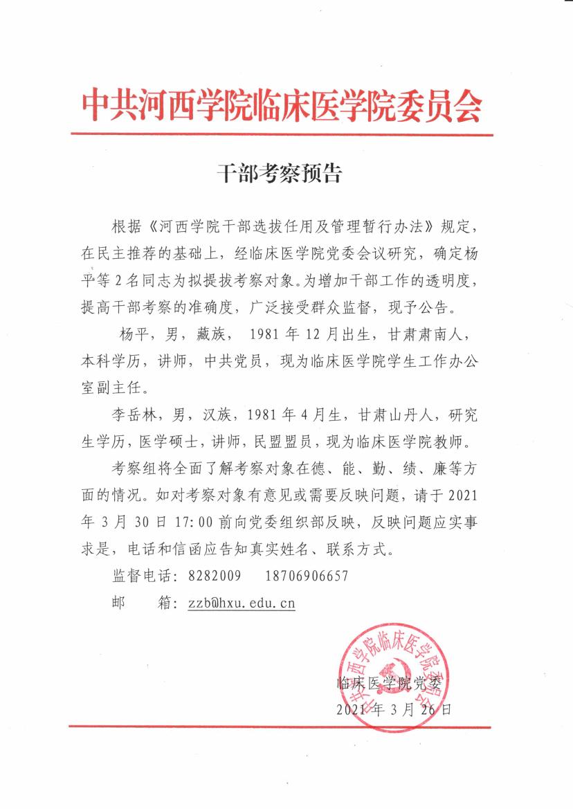 干部考察预告